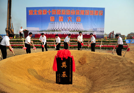 湖北省第十四屆運動會體育場館奠基,集團董事長王軍亞應邀出席誓師大會